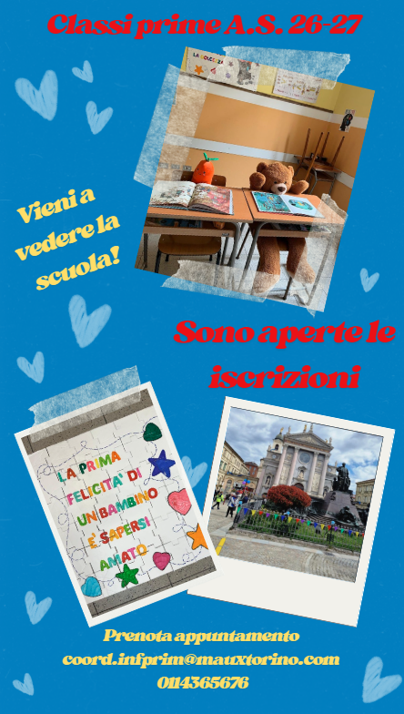 Cosa dovete fare? Navigare nelle pagine del sito per capire se siamo la scuola adatta ai vostri interessi e valori. Scrivere una mail per prendere appuntamento indicando nome, cognome e data di nascita della vostra bimba/del vostro bimbo. Oppure telefonare allo 0114365676 e chiedere della coordinatrice G. Laura Perron così da poterci incontrare di persona.